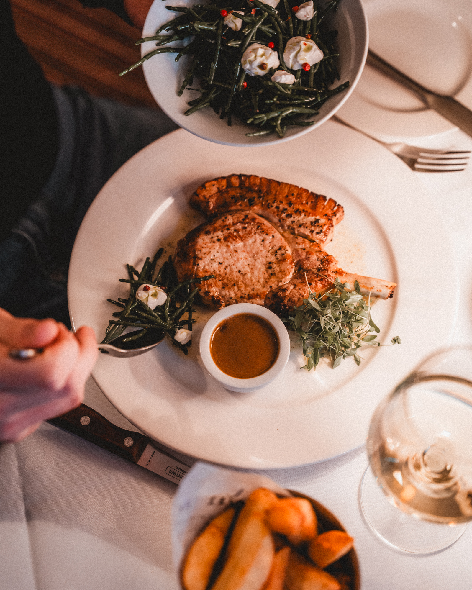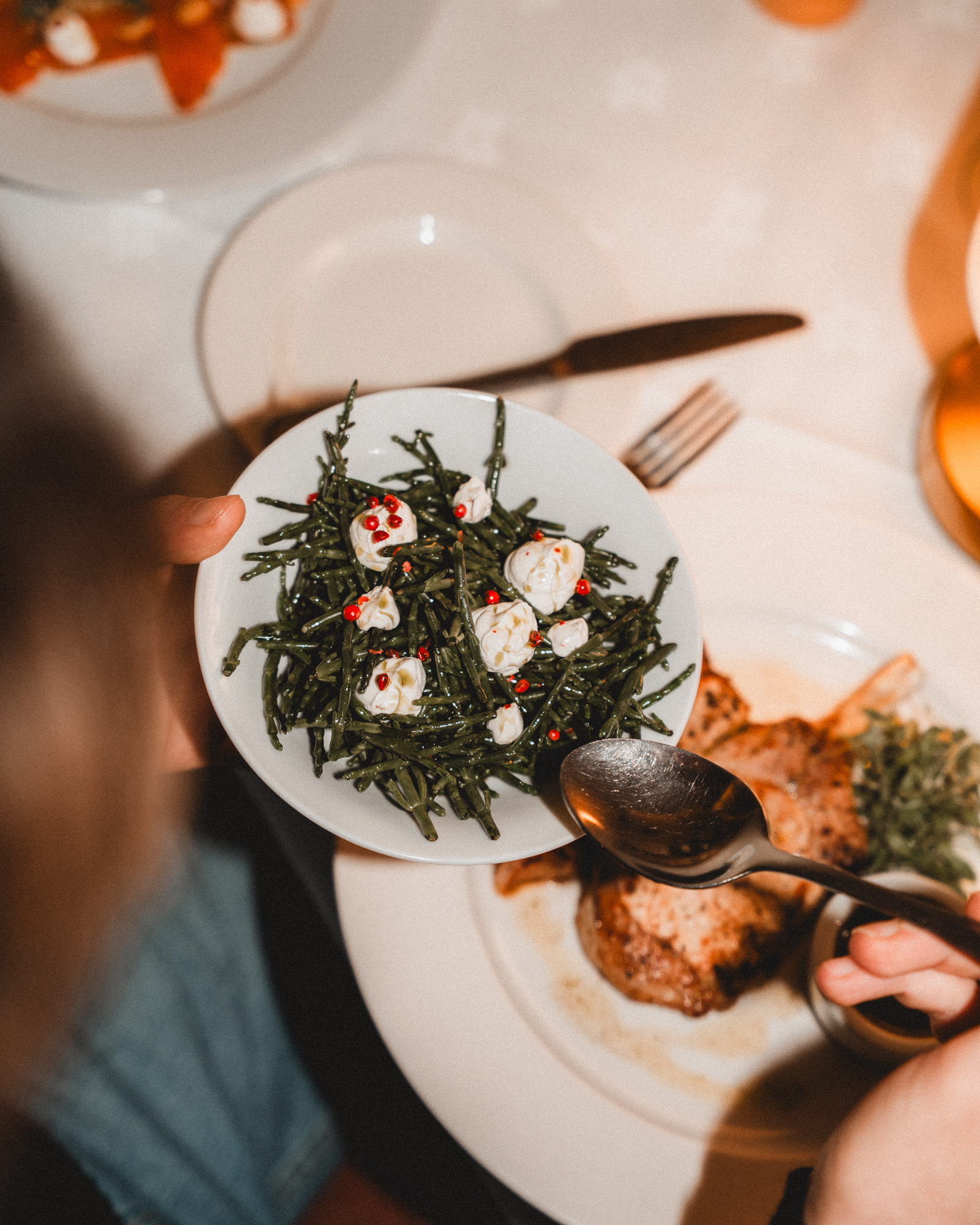 Alongside, you’ll find thoughtfully prepared sides such as Samphire with coriander and pink peppercorn labneh, offering a lighter, coastal note to balance richer plates.