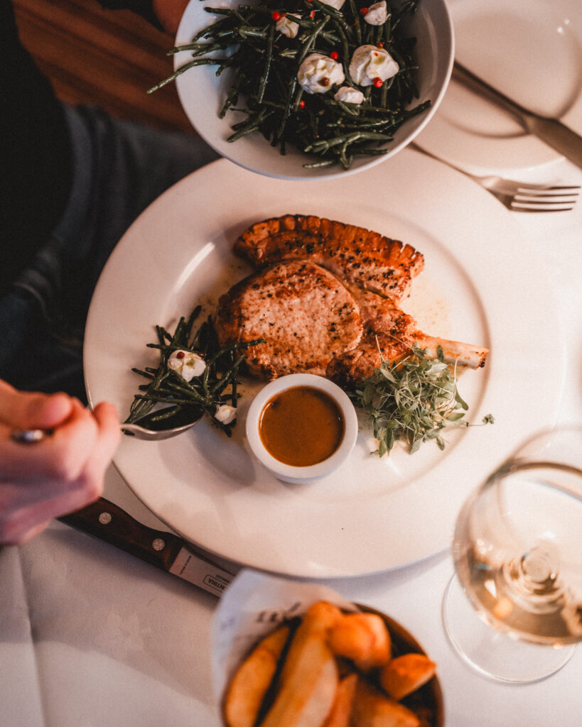 A staff favourite on the menu is our French Trimmed Pork Chop, cooked with care and served with a classic peppercorn sauce. It’s a robust, deeply satisfying main that suits the season perfectly.